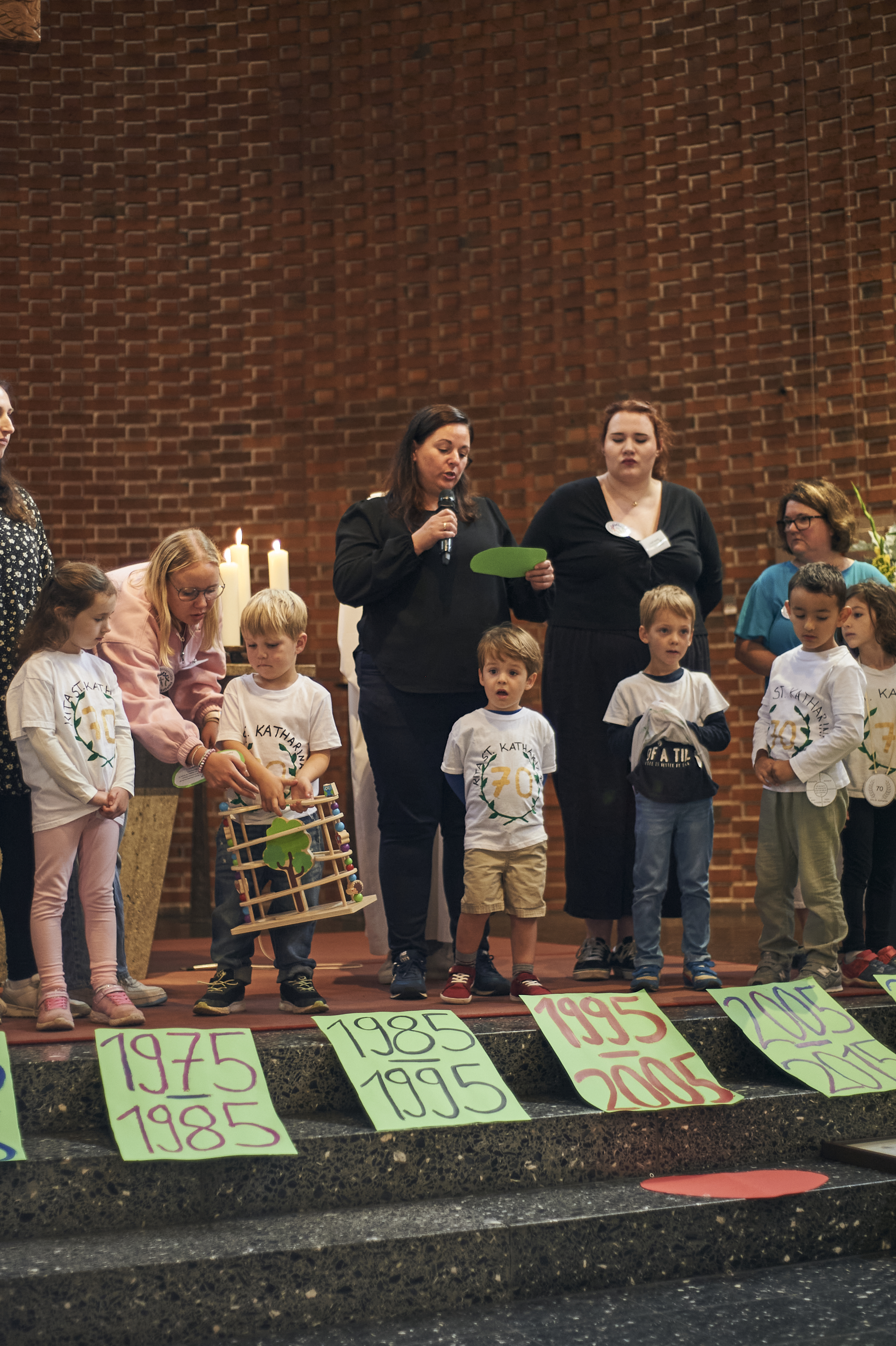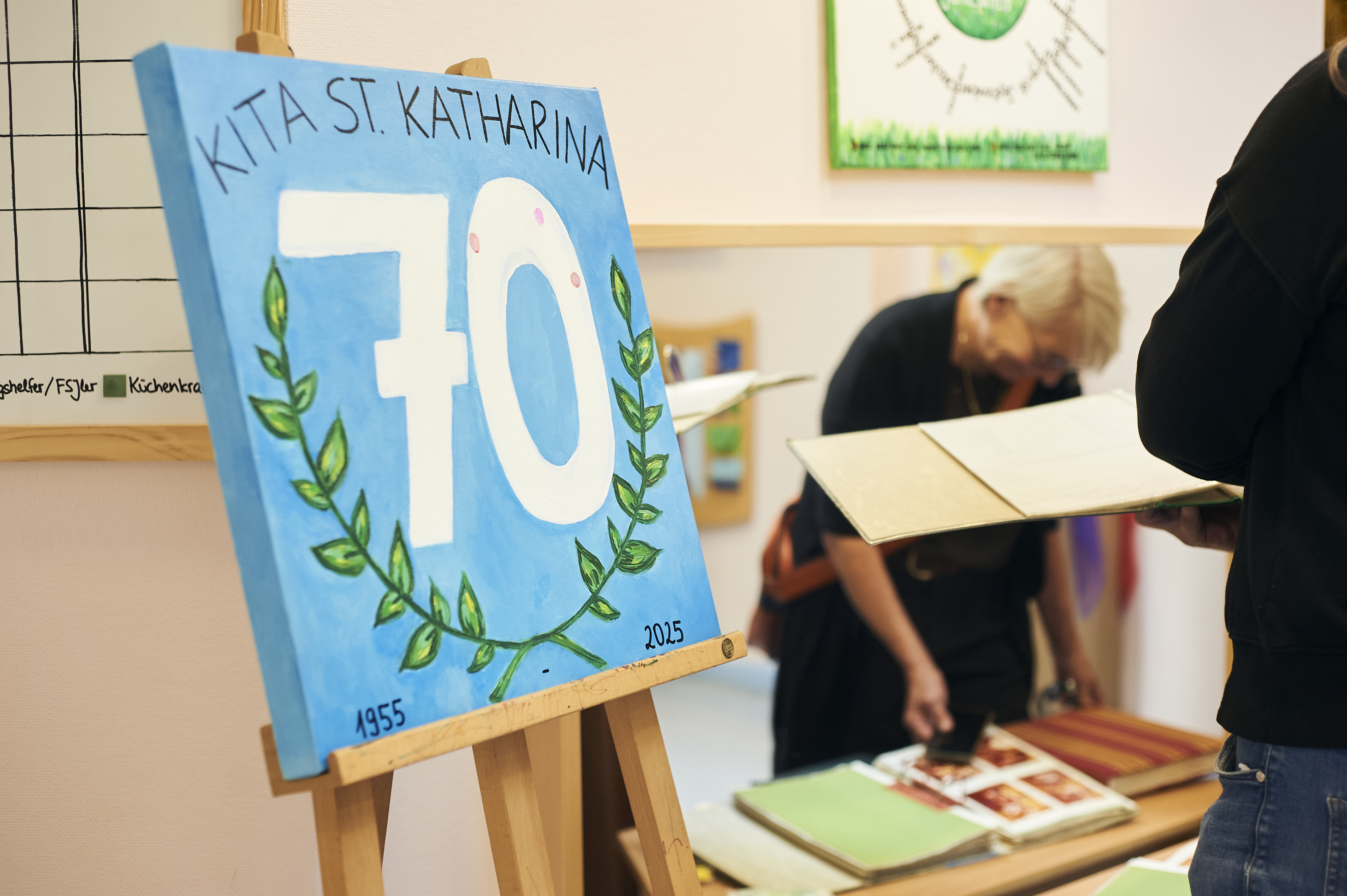 70- Jahre- Kita - eine Zeitreise durch die JahrzehnteMit einem bunten Fest feierte die Kita am 13.09.2025 ihr 70- jähriges Bestehen. Zahlreiche Gäste, darunter aktuelle und ehemalige Kinder, Eltern, Mitarbeitende sowie Vertreter aus der Gemeinde kamen zusammen, um diesen besonderen Meilenstein zu würdigen. Übersicht Originalgröße ![]() ![]() Übersicht Originalgröße ![]() ![]() Übersicht Originalgröße ![]() ![]() Übersicht Originalgröße ![]() ![]() | Öffnungszeiten Montag - Freitag: Kontakt Kindertagesstätte St.Katharina Tel: 02 11 - 27 61 00 eMail: Kita.St-Katharina@st-margareta.de LeitungTina Wojcik