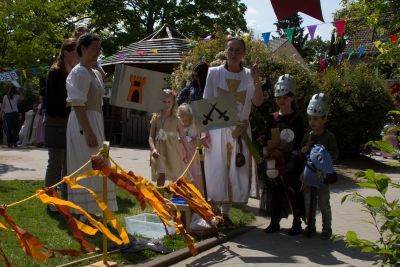 Das Mittelalterfest im großen Garten 2019Kleine Ritter, Drachen und Burgfräulein eroberten an einem Sonnen-Samstag im Mai den großen Garten unseres Kindergartens. Sie liefen von Station zu Station, um ihr Können auf die Probe zu stellen. Im Schatten einer riesigen Burg übten sie Bogenschießen, auf dem Rasen starteten sie ein Pferderennen, und mit ihrer schweren Montour meisterten sie am Ende sogar einen Parcours. Ganz klar: Wer sich so ins Zeug legt, bekommt dafür auch einen Orden, eine Urkunde - und ein Stück Kuchen. Das war ein Super-Ritterfest mit vielen Gewinnern. Es bildete den Abschluss unserer Projektwoche, in der wir in allen vier Gruppen Burgen gebastelt und Geschichten über das Mittelalter angehört haben. Sogar eine Kino-Vorführung gab es im Turnraum: Alle älteren Kindern durften Robin Hood ansehen. | Öffnungszeiten Montag - Freitag: Kontakt Kindertagesstätte St.Katharina Tel: 02 11 - 27 61 00 eMail: Kita.St-Katharina@st-margareta.de LeitungTina Wojcik