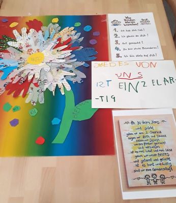 Projektwoche im März 2019 zu Kinderrechten2019 feiert die Welt 30 Jahre Kinderrechte! Das hat unsere Kita zum Anlass genommen, um mit den Kindern über ihre Rechte zu sprechen. Jede Gruppe hat fünf Rechte ausgesucht und jeden Tag ein Recht mit den Kindern thematisiert. Dabei kamen auch digitale Medien zum Einsatz. Wir haben sogar einen kurzen Film gedreht. Zum Abschluss der Projektwoche öffnete der Kindergarten die Türen und zeigte den Eltern die Ergebnisse. Dabei konnte sie viele spannende Dinge entdecken. Zum Beispiel hatten die Kinder ein Büro eingerichtet, in dem Kinderpässe ausgestellt wurden. Und um in die Welt von Kindern in anderen Ländern eintauchen zu können, gab es sogar selbstgekochtes Essen aus verschiedenen Ländern der Welt. | Öffnungszeiten Montag - Freitag: Kontakt Kindertagesstätte St.Katharina Tel: 02 11 - 27 61 00 eMail: Kita.St-Katharina@st-margareta.de LeitungTina Wojcik